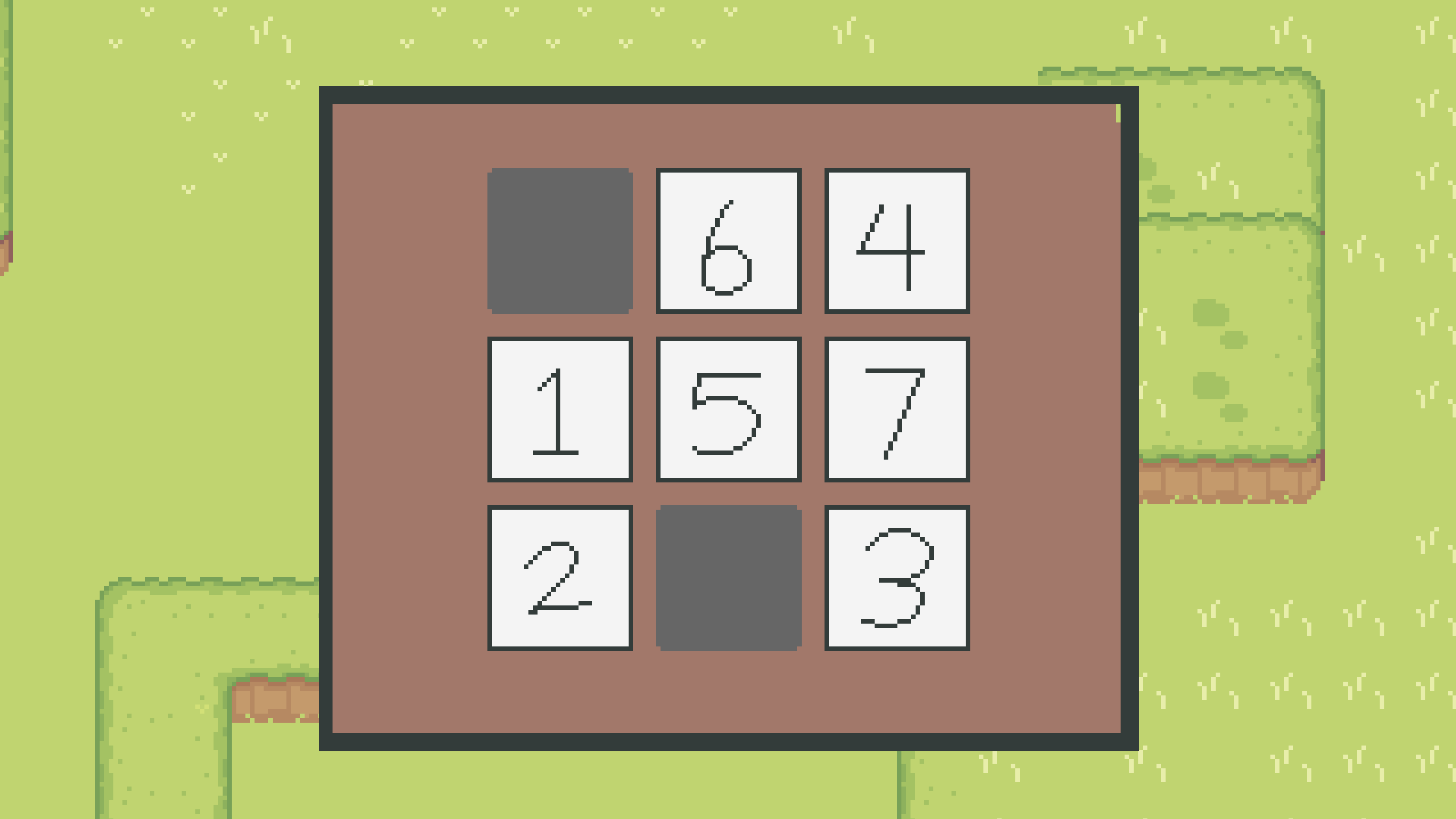 The core gameplay of this game is smart navigation and space management; each tile has an attachment because it is actually one large map divided into 3x3 puzzle pieces, so in some tiles, players need to arrange the tile positions to be able to access other tiles because some sides may be blocked by walls so that they cannot be accessed from all directions. Therefore, players must thinks to arrange the tile positions so that paths to new tiles open. Players will also find NPCs who need help and will provide puzzle pieces after being helped, some of which we need to find items to arrange tiles so that the NPC can get what they looking for or needs such as roads or other NPCs.