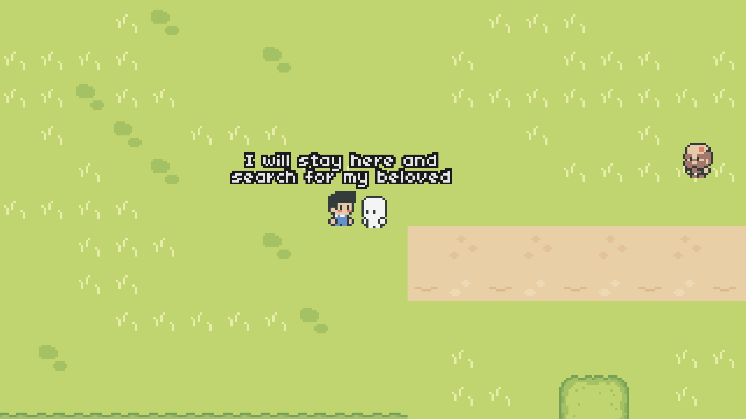 After a tiring day at work, you finally fall asleep upon arriving home. However, a sense of confusion strikes... why are you here? Standing on a narrow patch of green grass. It's spacious enough to walk around, but you can't do anything. In the distance, you see another expanse of green, but access is blocked by a tall mound of earth.